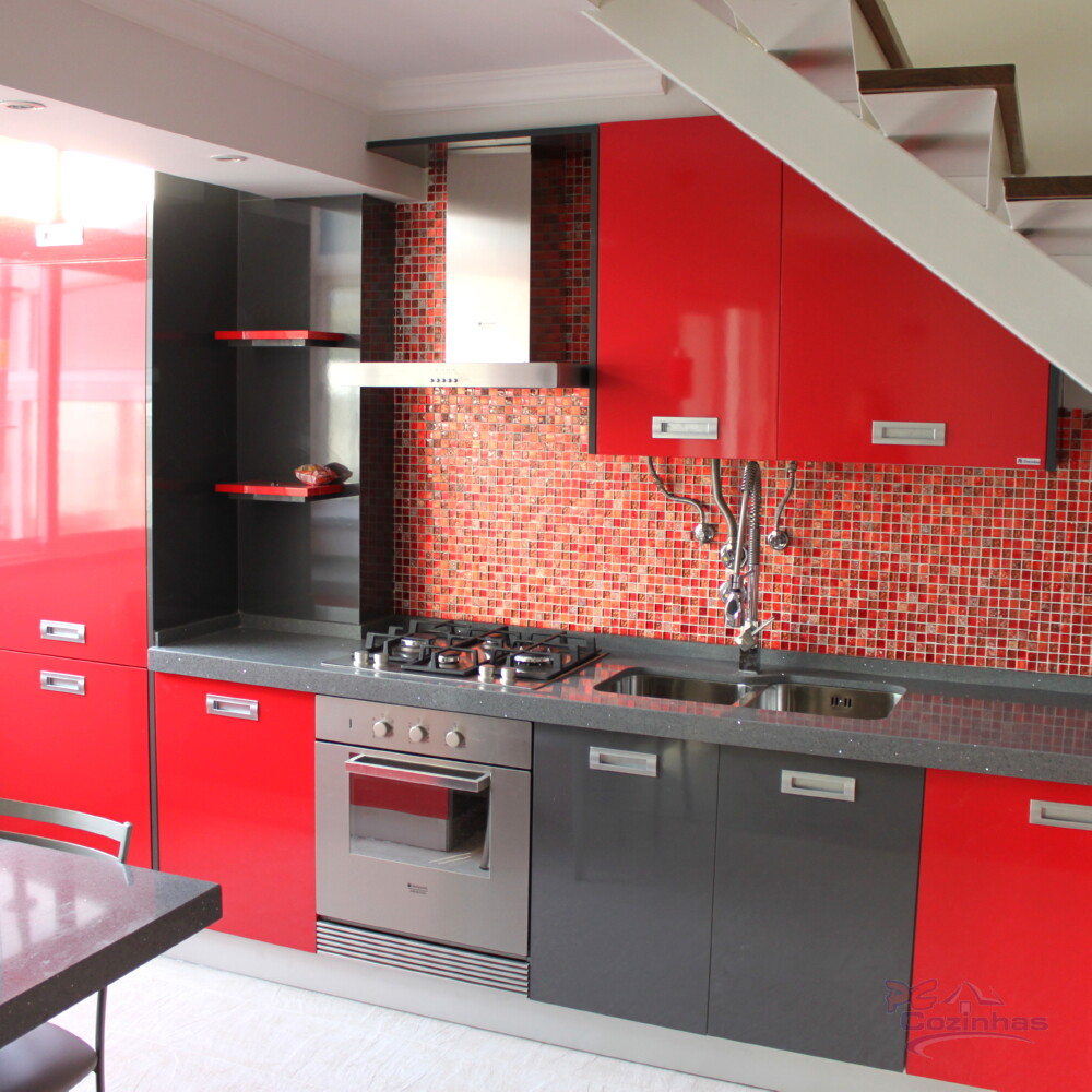 Modelo Póvoa Vermelho e Cinza Brilho -